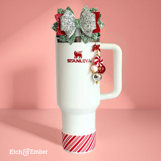 Peppermint Glitter Tumbler Bow