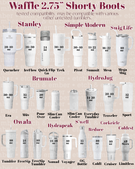 Our Stanley Black Lovely accessories collection includes tumbler boots designed for secure fit and everyday durability. Each boot is sized based on inner diameter, which is key to ensuring it fits properly and stays in place during use.