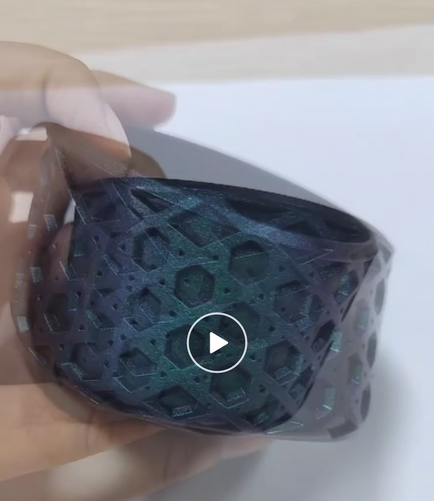 Printed designs may appear stretched in certain areas due to the hydro printing technique used. This is normal and expected.