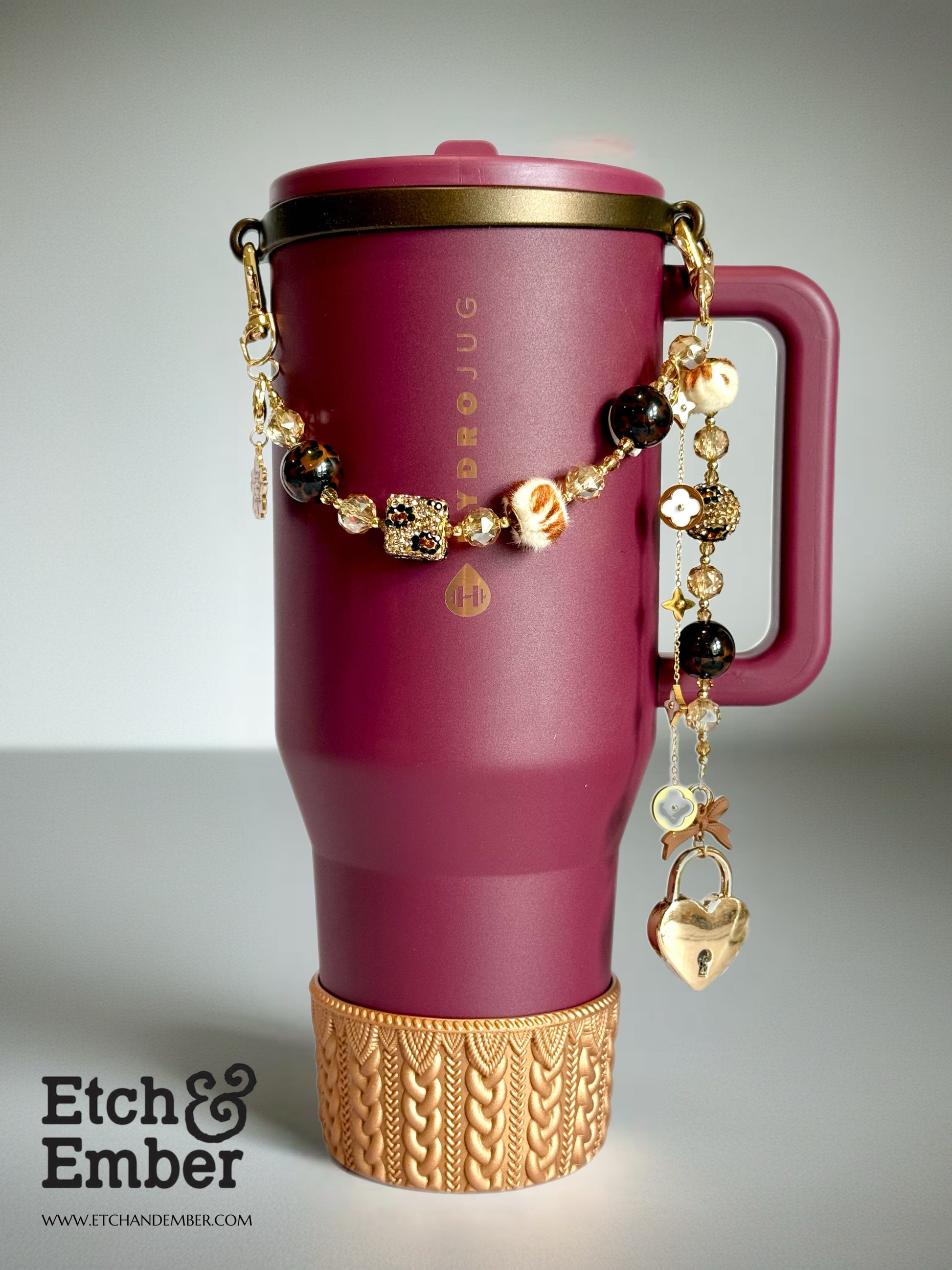 This playful accessory is designed to make your tumbler truly one-of-a-kind. Each charm necklace comes fully assembled with charms, a sturdy chain, and easy-to-use clasps on each side, allowing you to attach it seamlessly to the silicone strap of your choice (straps sold separately).